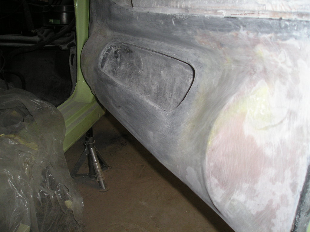 Karosserie: Radläufe geweitet, Seitenblinker entfernt, Heck "clean", Wischerabdeckung handsigniert, Stoßfänger hinten glatt mit Aussparung für Endrohre, modifizierte Frontstoßstange von Dietrich, Motorhaube in Blech verlängert "böser Blick", Motorraum "clean", Hoefele Seitenschweller, Mattig Tropfenspiegel, Bonrath Kühlergrill und Einarmscheibenwischer, Dachleisten von 2000er Modell, klare Scheinwerfer von In Pro, klare Rückleuchten von FK